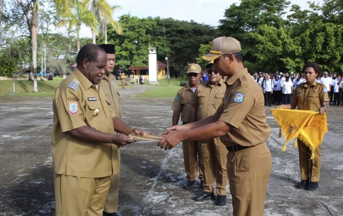 “Jangan jadikan ASN sebagai pekerjaan biasa, melainkan sebagai bentuk pengabdian. Melayani masyarakat adalah hal utama yang harus kita junjung tinggi,” tegas Bupati Johny Kamuru di hadapan peserta apel.