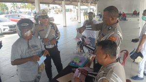 “Kendaraan yang paling banyak terkena razia yakni tidak mengenakan helm, surat kendaraan yang mati dan tidak kesesuaian TNKB antara yang tertulis dengan yang terpampang di kendaraan bermotor, ” Pungkas Samolo.(ARY)