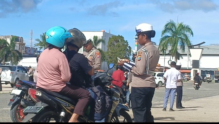 Petugas mendapati pengendara melakukan pelanggaran tidak menggunakan helm