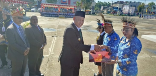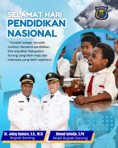 Wakil Bupati Sorong, Ahmad Sutedjo, bertindak selaku pembina upacara dan menyampaikan sambutan penuh makna yang menyoroti pentingnya pendidikan sebagai fondasi utama kemajuan bangsa.