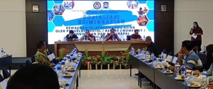 Koran Online, SORONG – Kantor Imigrasi Kelas II TPI Sorong menggelar kegiatan sosialisasi kewajiban pelaporan keberadaan orang asing kepada pengelola akomodasi dan agen kapal, Kamis (22/5). Kegiatan ini bertujuan untuk memperkuat pengawasan keimigrasian dan meningkatkan kesadaran hukum masyarakat, khususnya pihak-pihak yang memiliki peran langsung dalam interaksi dengan warga negara asing (WNA).