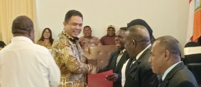 Di balik deretan pejabat yang berdiri tegak, hadir pula Ketua Dewan Perwakilan Rakyat Kabupaten (DPRK) Sorong, Mawardi Nur. Sosok yang dikenal sebagai tokoh muda dan representasi masyarakat ini menyampaikan apresiasinya kepada para pejabat yang baru dilantik.