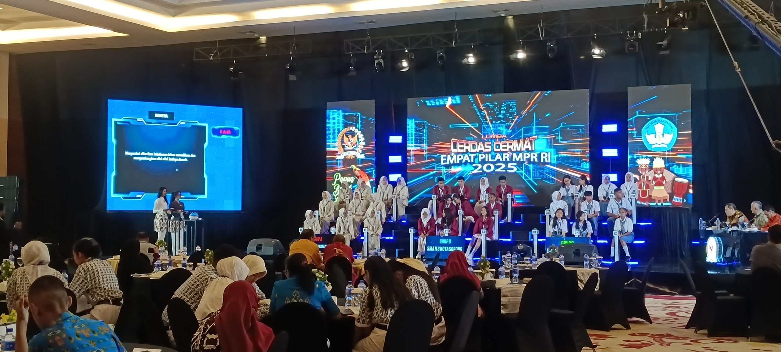 Koran Online, Sorong-Anggota Majelis Permusyawaratan Rakyat Republik Indonesia (MPR RI) Fraksi Partai Golkar Daerah Pemilihan Papua Barat Daya, Robert Joppy Kardinal (RJK), secara resmi membuka Lomba Cerdas Cermat (LCC) Empat Pilar MPR RI Tahun 2025 yang digelar di Aimas Hotel Convention Centre, Kabupaten Sorong, Sabtu (19/07/25).