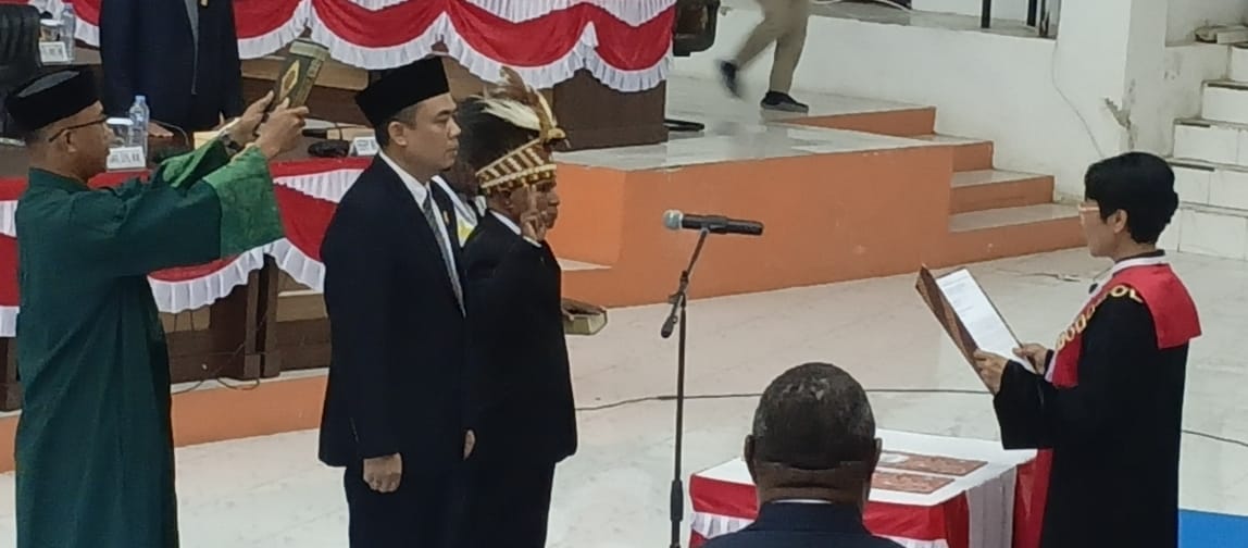 Upacara pelantikan yang berlangsung di Ruang Rapat Paripurna Kantor DPRD itu disaksikan oleh jajaran pejabat pemerintahan, tokoh agama, tokoh masyarakat, serta unsur Forum Koordinasi Pimpinan Daerah (Forkopimda). Pengambilan sumpah jabatan dilakukan dengan pengantar doa oleh perwakilan tokoh agama Islam dan Kristen, mencerminkan nilai keberagaman yang harmonis di Tanah Malamoi.