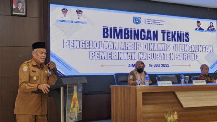 Koran Online,SORONG – Pemerintah Kabupaten Sorong menggelar kegiatan Bimbingan Teknis (Bimtek) Pengelolaan Arsip Dinamis Tahun 2025 yang diikuti oleh 32 Organisasi Perangkat Daerah (OPD) dan 3 distrik di lingkungan Pemerintah Daerah Kabupaten Sorong. Kegiatan tersebut bertujuan meningkatkan pemahaman aparatur sipil negara dalam mengelola arsip secara tertib, sesuai kaidah, dan mendukung tata kelola pemerintahan yang bersih dan transparan, Selasa (15/07/25).