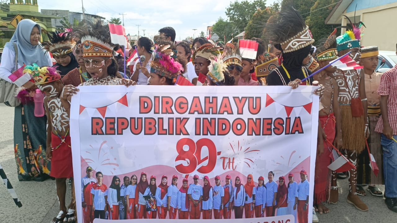 Koran Online, SORONG– Suasana Aimas, Kabupaten Sorong, Senin (11/08/25) siang berubah menjadi lautan warna. Ratusan anak PAUD, TK, dan SD, mengenakan busana adat dari berbagai daerah di Indonesia, memenuhi jalan dari SD Negeri 12 Kabupaten Sorong hingga Alun-alun Aimas.