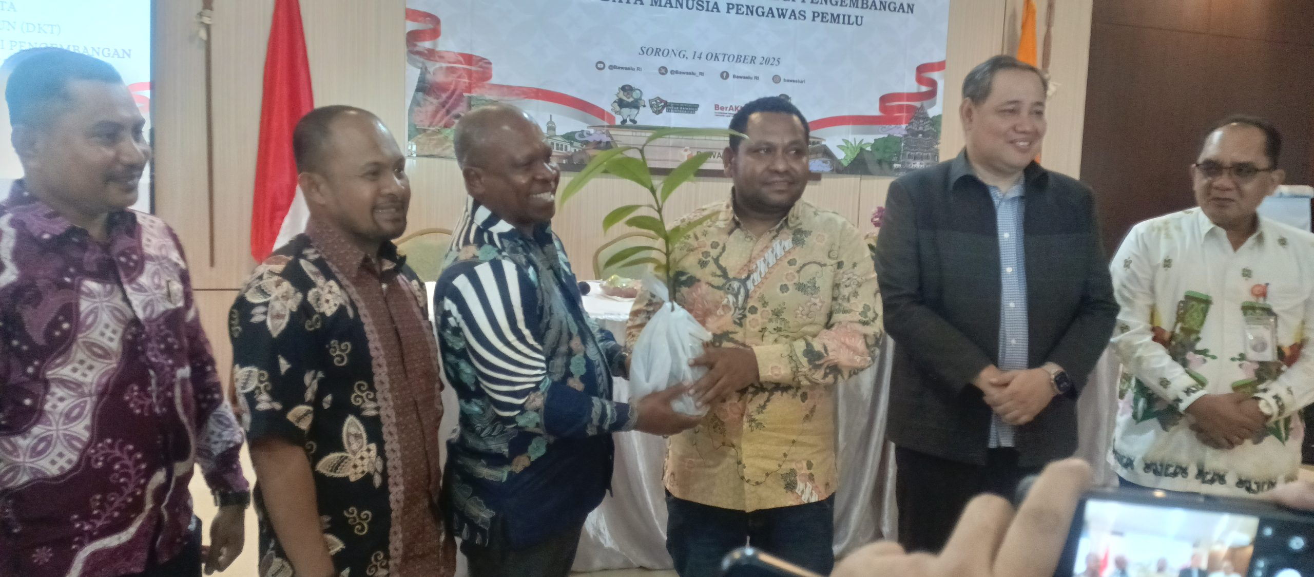 Sebagai penegasan terhadap nilai-nilai kejujuran dan integritas, kegiatan ini ditutup dengan penyerahan “Pohon Integritas” dari Bawaslu RI kepada Bawaslu Papua Barat Daya. Penyerahan simbolik tersebut dimaknai sebagai pesan moral agar seluruh jajaran pengawas pemilu terus menumbuhkan nilai kejujuran, tanggung jawab, dan profesionalitas dalam setiap tahapan pengawasan.