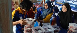 Pendistribusian hewan qurban yang telah dipotong dikemas dalam wadah mika plastik