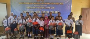 Selain pemberian MBG, dalam momen yang sama PWI juga memberikan bantuan berupa tas sekolah kepada sejumlah perwakilan siswa-siswi YPPK Don Bosco.