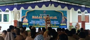 Kepala Dinas Perumahan dan Kawasan Permukiman, Dr. Markus Karath, S.IP., M.Si., dalam sambutannya menyampaikan apresiasi dan rasa terima kasih kepada seluruh hadirin yang telah meluangkan waktu untuk menghadiri acara tersebut. Ia menekankan pentingnya Halal Bihalal sebagai sarana mempererat persaudaraan tanpa membedakan latar belakang, jabatan, suku, ras, maupun agama.